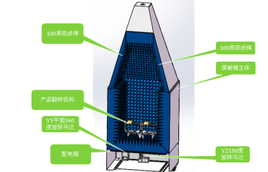 一般來說5G毫米波屏蔽暗室內(nèi)部測(cè)試支架結(jié)構(gòu)還包括 :夾具, 支架 轉(zhuǎn)臺(tái) 軸承固定床 電機(jī) 360同步帶旋轉(zhuǎn) USB出線口 4個(gè)USB接口 電機(jī)